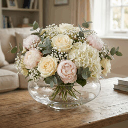Váza sklenená - nízka, tvar misy, číra