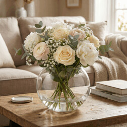 Váza sklenená - guľatá, nízka, veľkosť malá, číra