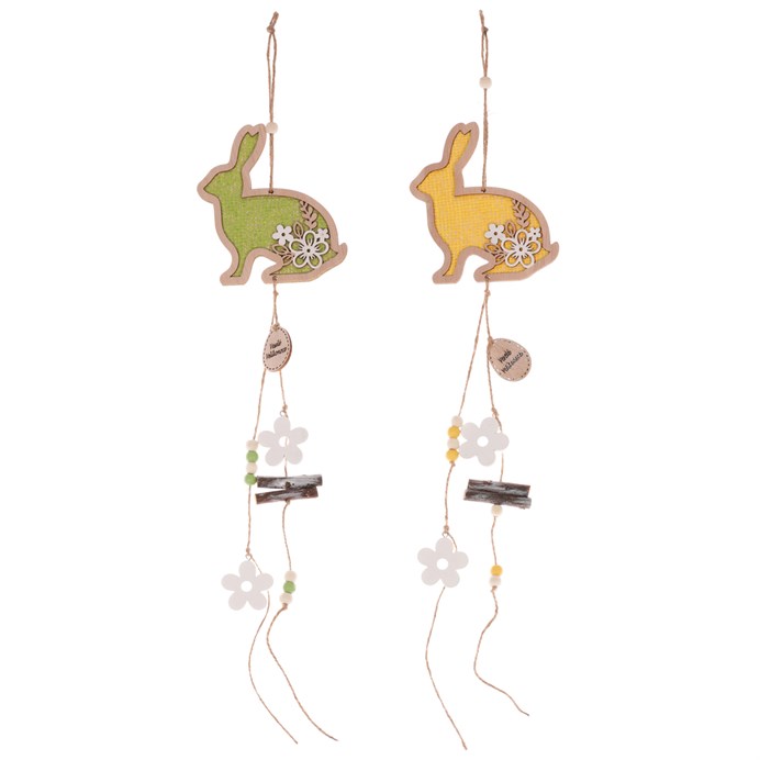 Zajac drevený - závesná dekorácia, mix 2 farieb, cena za 1 ks