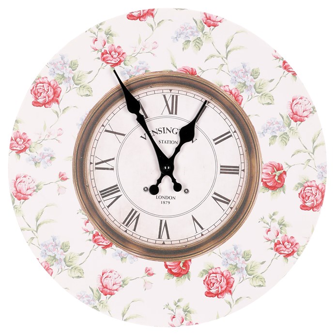Hodiny nástenné - pr. 34 cm, MDF, kvetinový motív