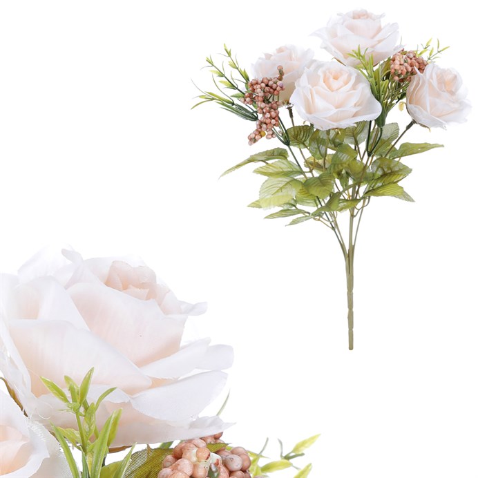 Ruža a zeleň - umelá kytica, farba krémová