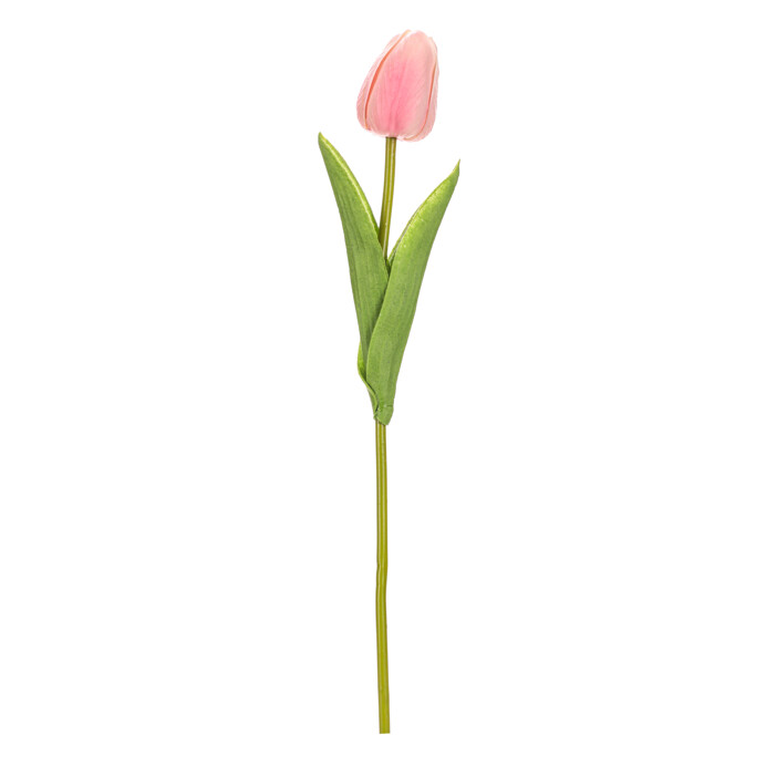 Umelý rezaný tulipán v ružovo-bielom odtieni je vyrobený z polyuretánovej peny, ktorá verne napodobňuje prirodzenú štruktúru kvetu aj listov. Jemné farebné prechody na okvetných lístkoch dodávajú dekorácii živý a prirodzený vzhľad. Dlhý stonok s dvoma zelenými listami umožňuje jednoduché aranžovanie do vázy alebo dekoratívnych kompozícií. Vynikne v jarných dekoráciách aj ako samostatný doplnok interiéru.