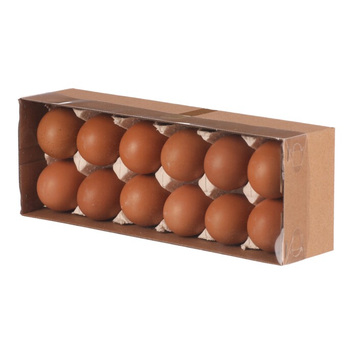 Balenie obsahuje 12 pravých slepačích vajec v hnedom prevedení, vhodných pre široké využitie na aranžovanie. Vajíčka sú uložené v praktickom papierovom obale, ktorý zaisťuje ich bezpečné uskladnenie a jednoduchú manipuláciu. Hnedá škrupina je prirodzená a typická pre tento druh vajec. Tento produkt je určený výhradne na dekoratívne účely.