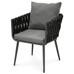 Záhradná stolička v šedom prevedení kombinuje pevnú kovovú konštrukciu s komfortným textilným čalúnením sedáka a operadla. Dizajn stoličky je nadčasový, s otvoreným prepletaným rámom, ktorý zabezpečuje dostatočnú cirkuláciu vzduchu a ľahkosť celkového vzhľadu. Čalúnenie je príjemné na dotyk a vhodné pre vonkajšie použitie, pričom nohy stoličky sú stabilné a odolné voči poveternostným vplyvom. Vďaka ergonomickému tvaru a polstrovaniu poskytuje pohodlné posedenie pri relaxácii na záhrade či terase. Stolička je ideálnou voľbou pre kombináciu štýlu a funkčnosti v exteriérovom prostredí.