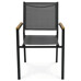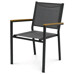 Záhradná stolička s kovovým rámom v sivej farbe ponúka pevné a stabilné prevedenie vhodné pre vonkajšie použitie. Sedák a operadlo sú potiahnuté odolnou textíliou, ktorá zabezpečuje pohodlie a jednoduchú údržbu. Prírodné polywoodové podrúčky pridávajú stoličke príjemný estetický kontrast a zároveň komfort pri sedení. Vďaka možnosti stohovania je stolička praktická na skladovanie a úsporu miesta. Je ideálnou voľbou pre záhradné posedenie, terasy či balkóny.