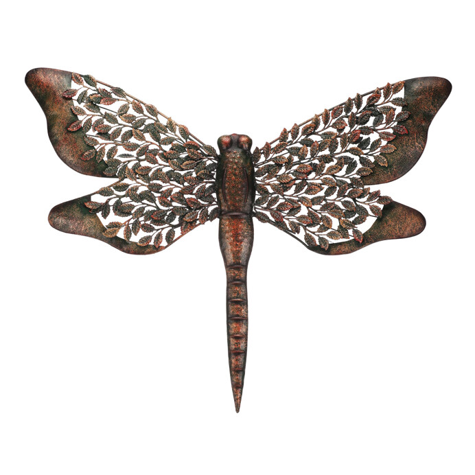 Kovová závesná dekorácia v tvare vážky v medenom odtieni zaujme prepracovaným detailom krídel, ktoré tvoria jemné štruktúry listov. Povrch s patinou dodáva dekorácii rustikálny charakter a vizuálny efekt starožitného kovu. Vážka je vhodná na zavesenie na stenu, kde prinesie prírodný motív a zaujímavý akcent do interiéru aj exteriéru. Vďaka pevnému kovovému prevedeniu je dekorácia navrhnutá pre dlhú životnosť a jednoduchú údržbu.